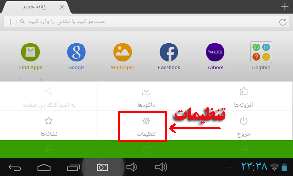 مرور گر Dolphin يکي ديگر از پر کاربرد ترين مرورگرهاي اينترنت مي باشد که در دستگاه هاي تبلت نيز مورد استفاده مي شود ، تنظيمات ذيل جهت فعال سازي فايل هاي فلش در اين مرور گر مي باشد. |